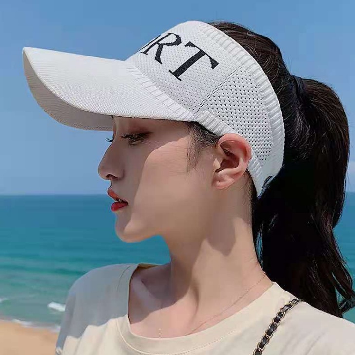 Harga Reseller Welcome – T5251 Topi Senam Wanita Korea / Topi Letter SPORT / Topi Golf Tennis Rajut Katun Elastis