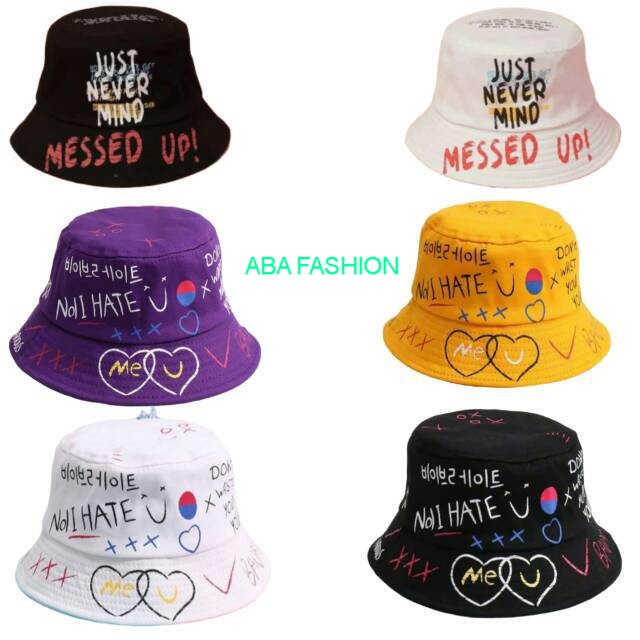 Topi Bucket Korea Wanita Pria Motif Badas Messed Up All Size