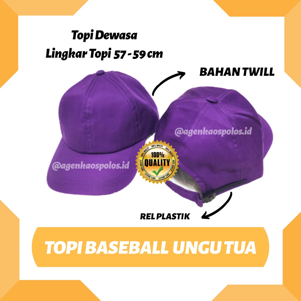 TOPI BASEBALL POLOS TWILL WARNA UNGU - TOPI DEWASA REL PLASTIK BAHAN PREMIUM PRIA WANITA