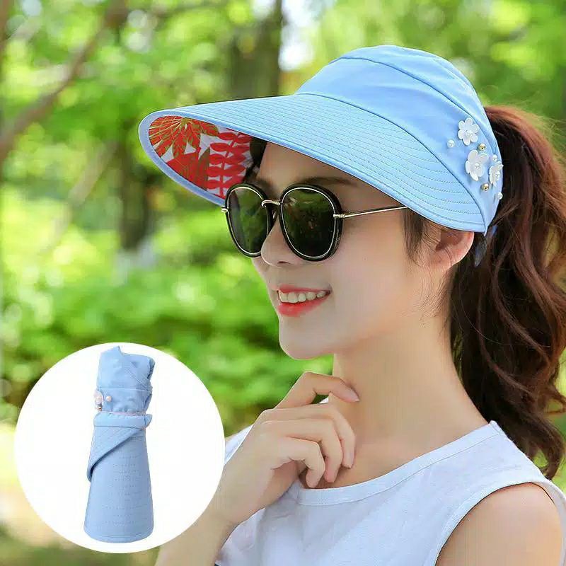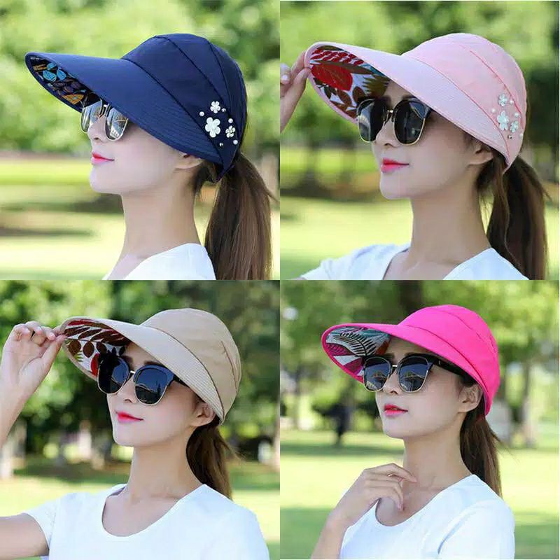 Harga TOPI WANITA LIPAT PELINDUNG ANTI SINAR UV/ TOPI FASHION PANTAI SANTAI