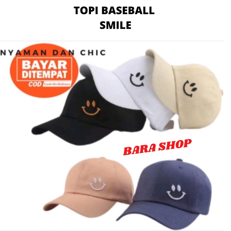 Harga Bara Shop | Topi Baseball SMILE Premuim Distro Murah Dewasa Pria Wanita / Topi Baseball Bordir SMILE Design Stylish Kualitas Premium