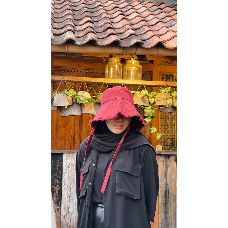 Alasan kenapa harus beli ( COD ) WIDE BUCKET HAT selebgram aksen tali /Bucket peniti/Topi Rimba polos topi wanita terlaris no 1 sekarang