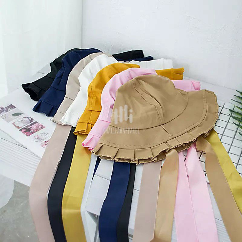 Harga KHALIFAHAPPAREL BUCKET HAT JAPANESE OOTD TOPI BUCKET HAT LEBAR WANITA BUCKET HIJAB TALI PANJANG