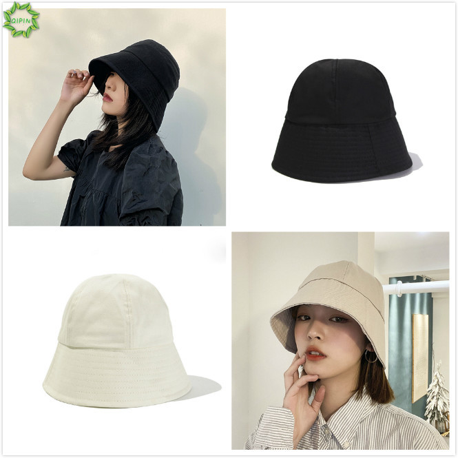 Qipin Topi Bucket / Fisherman Panama Wanita Proteksi Matahari Warna Polos Untuk Outdoor