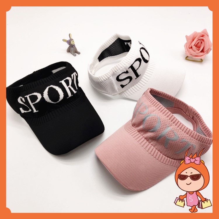 Reseller Welcome – T5251 Topi Senam Wanita Korea / Topi Letter SPORT / Topi Golf Tennis Rajut Katun Elastis