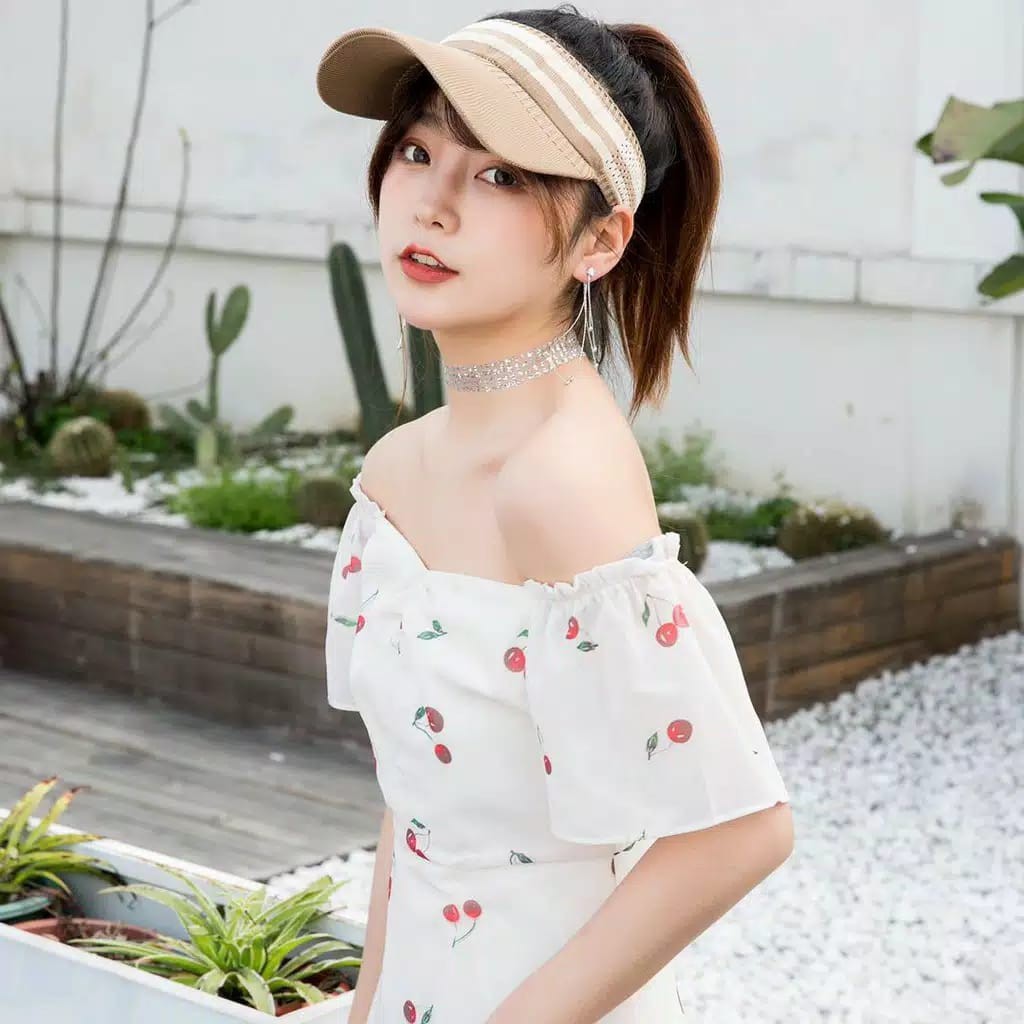 Harga Topi Baseball H202 Topi Korea fashion Wanita Rajut Baseball Motif Garis