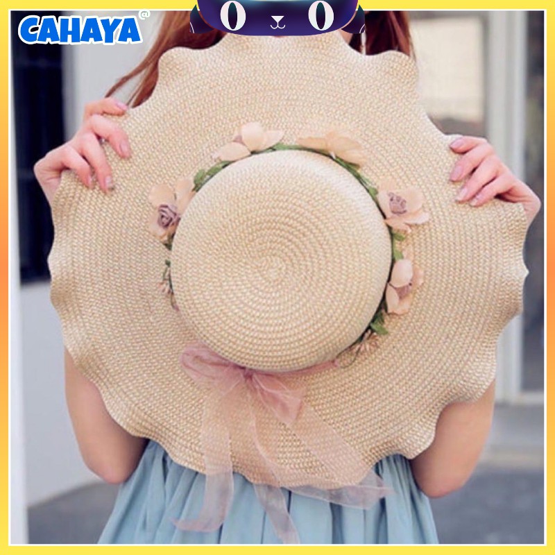 Topi Pantai wanita Bunga pelindung UV -Summerhat Pantai import CAHAYA T42 CAHAYA