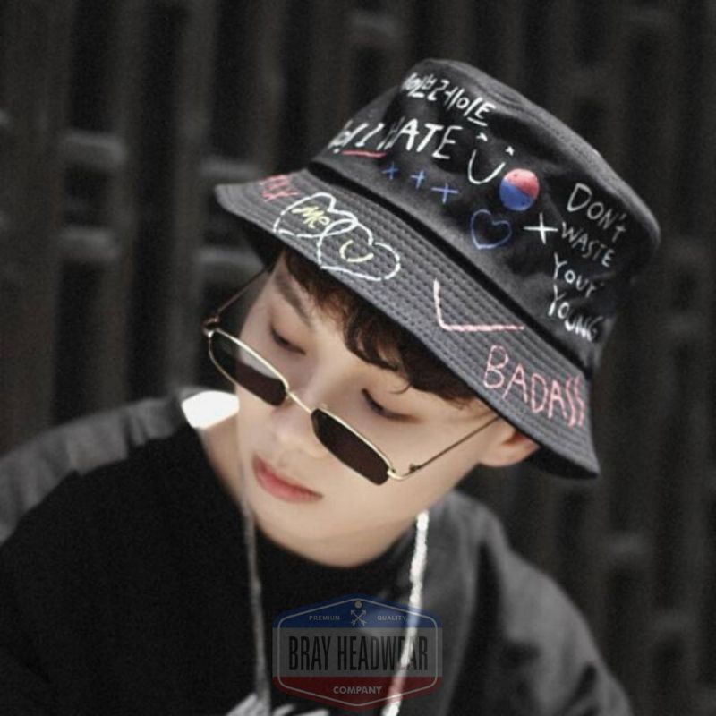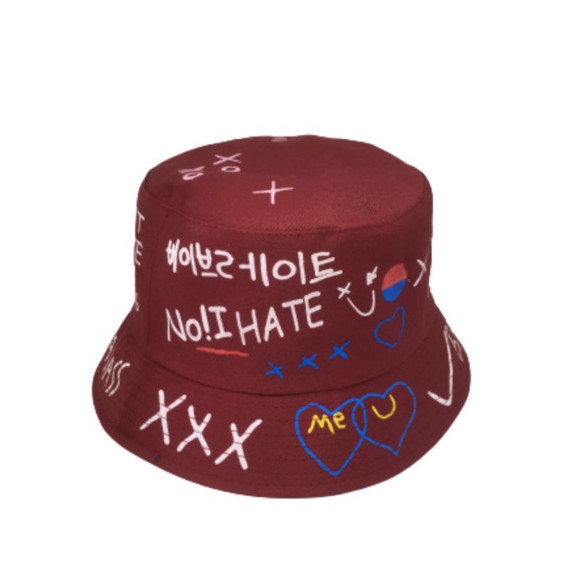 Harga Topi Bucket Pria Wanita Kpop Korea Bolak Balik Motif Sablon Badas