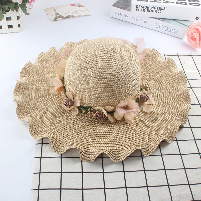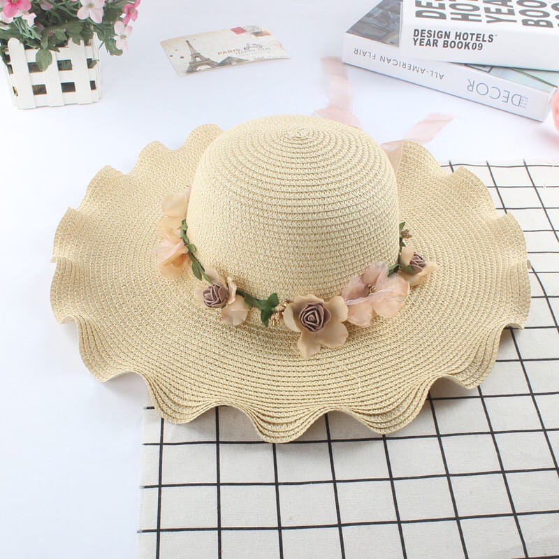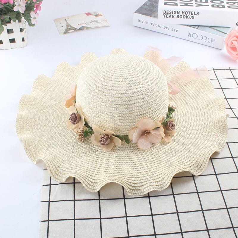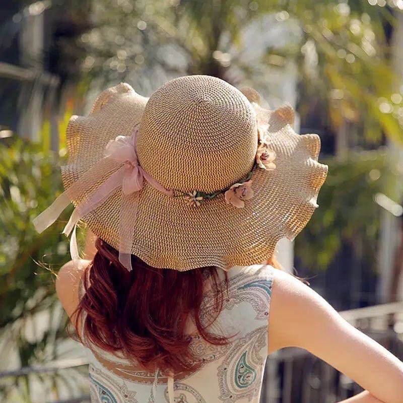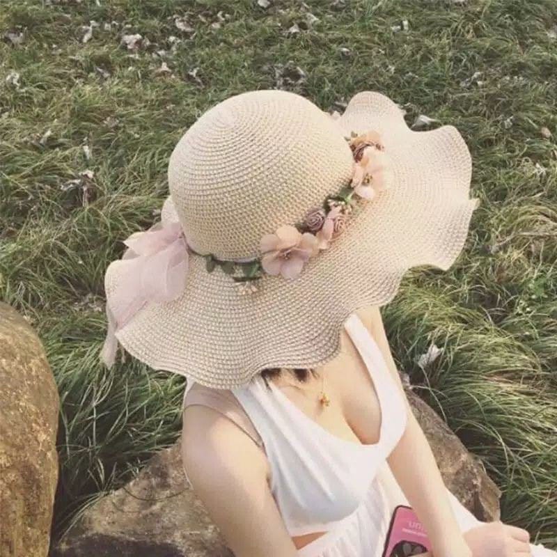 Topi Pantai wanita Bunga pelindung UV -Summerhat Pantai import CAHAYA T42 CAHAYA
