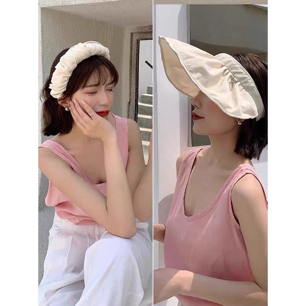 Kekurangan - Kekurangan membeli Topi/Bando 2in1 Vizor Anti UV Topi Pantai Lebar Topi Wanita Topi Bando Polos Outdoor di Toko ini