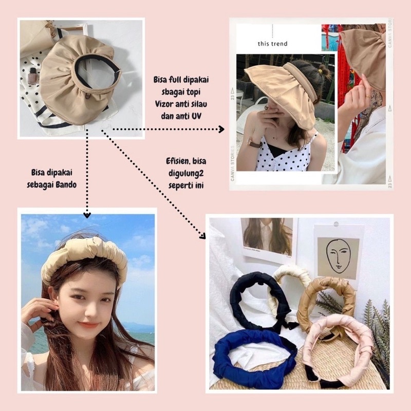 Kelebihan - Kelebihan membeli Topi/Bando 2in1 Vizor Anti UV Topi Pantai Lebar Topi Wanita Topi Bando Polos Outdoor di Toko ini