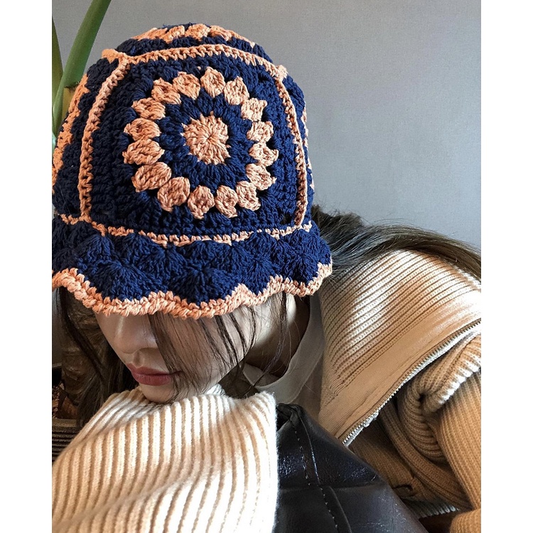 Harga Topi Bucket Bahan Wol Rajut Handmade Motif Bunga Gaya Korea Retro Untuk Wanita